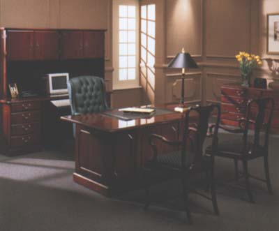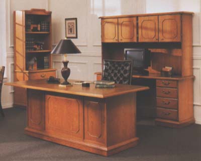 Available in three wood finishes or laminate tops. Wilmington Series features progressive full extension file drawers, central locking on desks, and decorative hand-applied molding.
