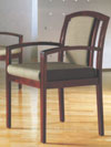 Clean, architectural design makes this chair a work of art. Slight curves within the back and arms, combined with the sleek lines of the legs create an aesthetic harmony. Rich maple frames your selection of decorative fabric offered in a wide range of choices, completing the masterpiece. This chair will complement virtually any setting.