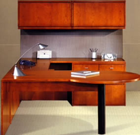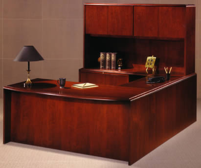 Available in three wood finishes or laminate tops. Wilmington Series features progressive full extension file drawers, central locking on desks, and decorative hand-applied molding.